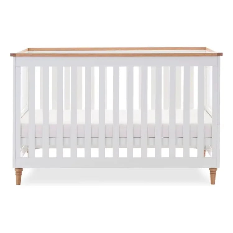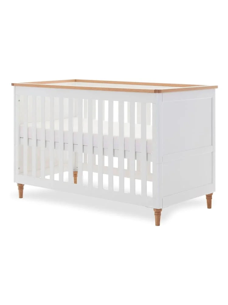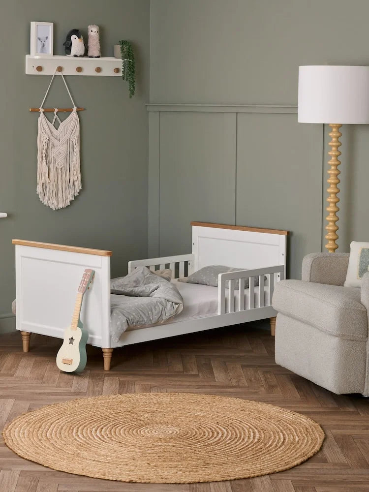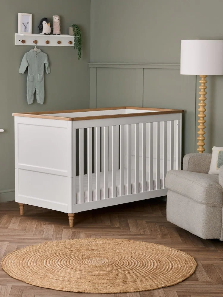 | Finish | Non-toxic white paint with natural wood accents |