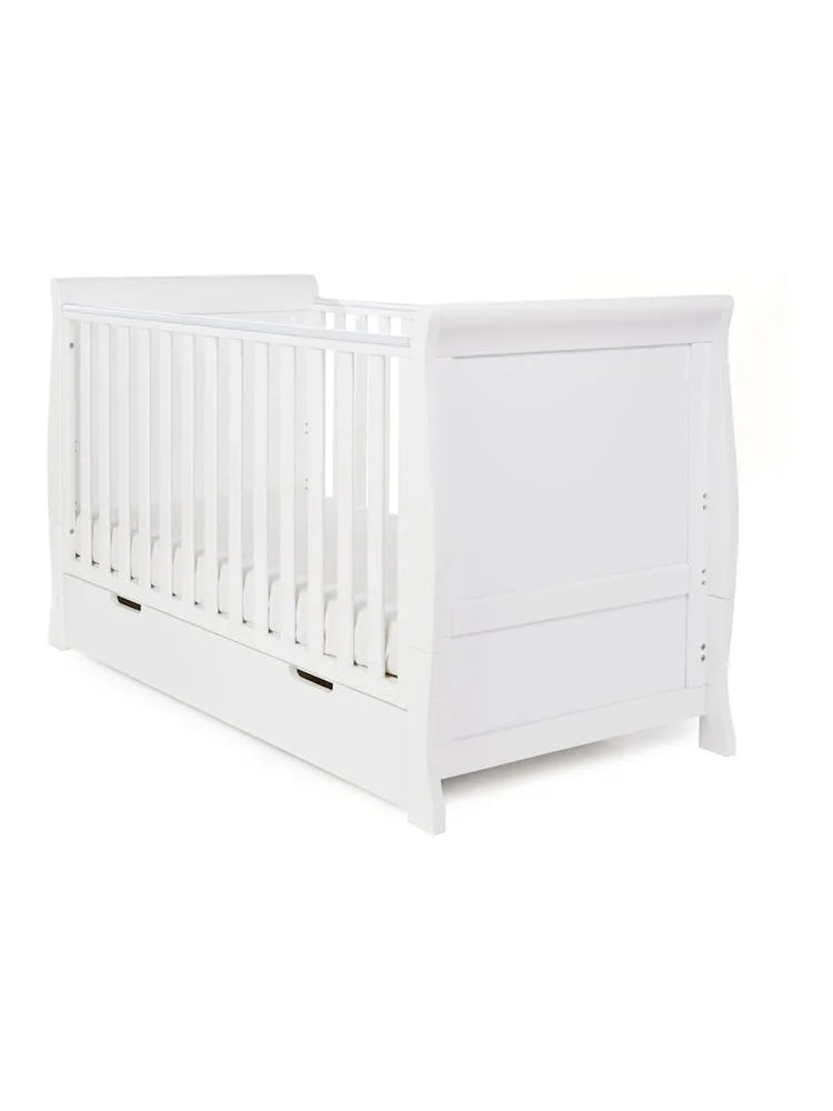 Modern White Solid Wood Convertible Baby Crib with Storage