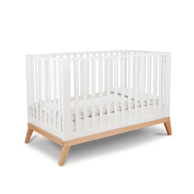 Your little dreamer will snooze in style within this beautifully crafted, sustainably harvested solid beechwood sanctuary designed for ultimate nursery comfort. This sturdy and durable cot features certified non-toxic finishes alongside an adjustable mattress base to safely accommodate every growth spurt and midnight wiggle. Integrated smooth-gliding wheels with secure locking mechanisms make it a total breeze to move the bed from the nursery to the living room. This modern furniture piece provides the perfect blend of minimalist elegance and cozy safety for your family's newest and most precious addition.