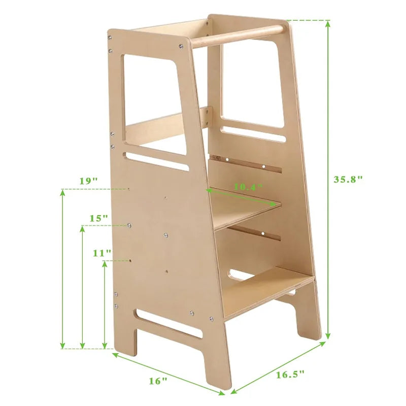 Adjustable Height Solid Wood Convertible Toddler Kitchen Learning Tower